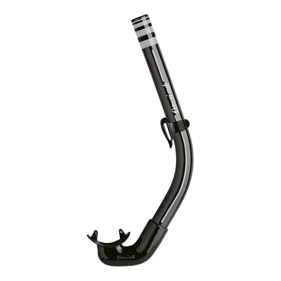 Der Schnorchel Cressi America ist ein anatomisch geformter Schnorchel, der sich dem Gesichtsprofil anpasst, ohne zu verkanten und ohne die Hydrodynamik zu beeinträchtigen. Der Durchmesser ist großzügig und die moderate Gesamtlänge ermöglicht ein einfaches Entleeren und Entlüften. Dieser Schlauch ist flexibel und unzerbrechlich, da er keine starren Teile hat, die brechen können. Das Silikon-Mundstück ist bequem und kieferorthopädisch geformt für eine komfortable und lang anhaltende Nutzung.